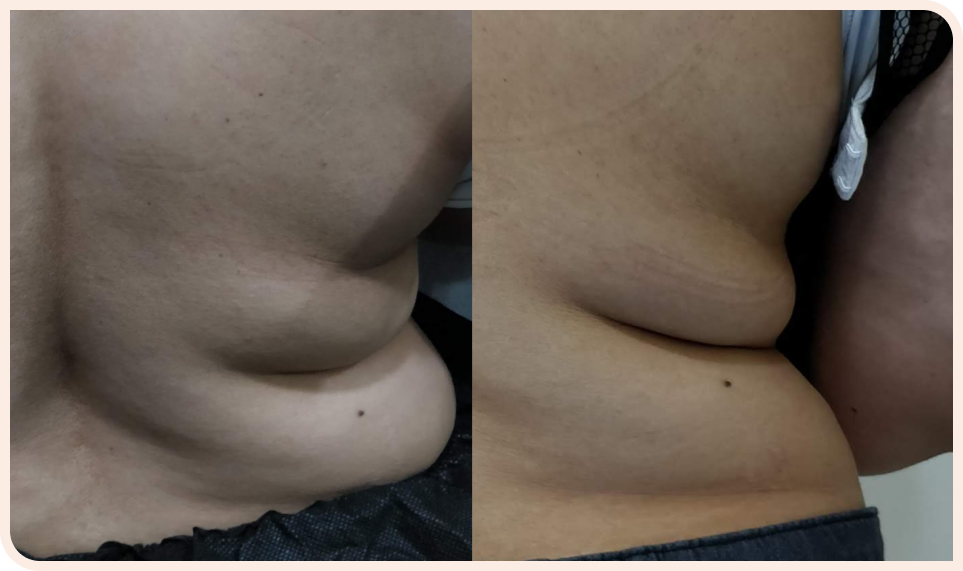 The injured fat cells are gradually eliminated by the body over 2 to 3 months. During that time the fatty bulge decreases in size, with an average fat reduction of about 25% percent and the patient drops a dress size